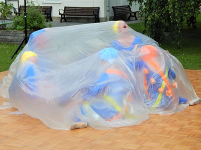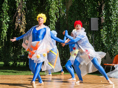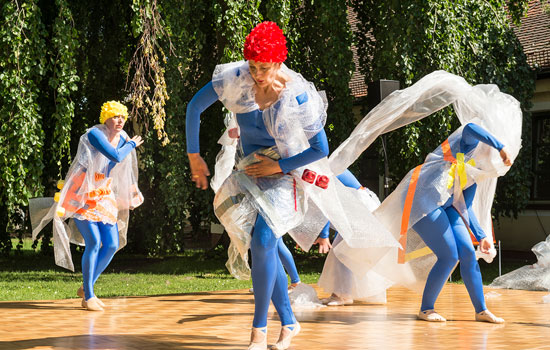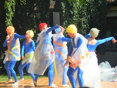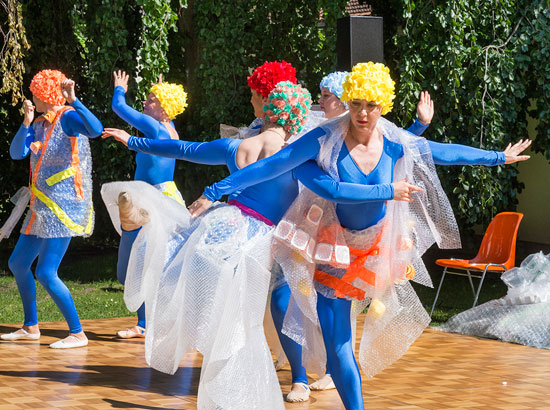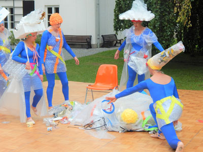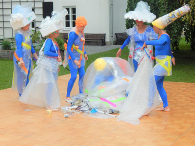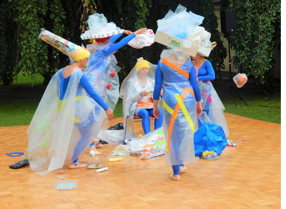 Iund gingen über in den Tanz "Plastik-Meeresfieber", um zu versinnbildlichen wie langlebig Plastik ist. Eine Einkaufstüte schwimmt 10 bis 20 Jahre lang im Meer, bis sie vollständig zerrieben ist. Ein Styroporbecher braucht ungefähr 50 Jahre, um zu zerbröseln. Eine PET-Flasche zerfällt erst innerhalb von 450 Jahren.